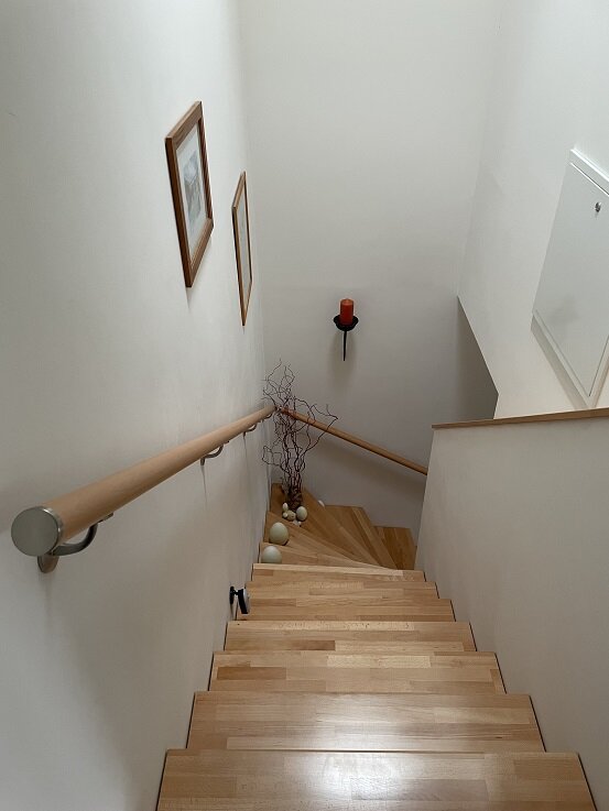 gekappt: Kanten der Handlaufenden gerade abgeschnitten - Enden unlackiert